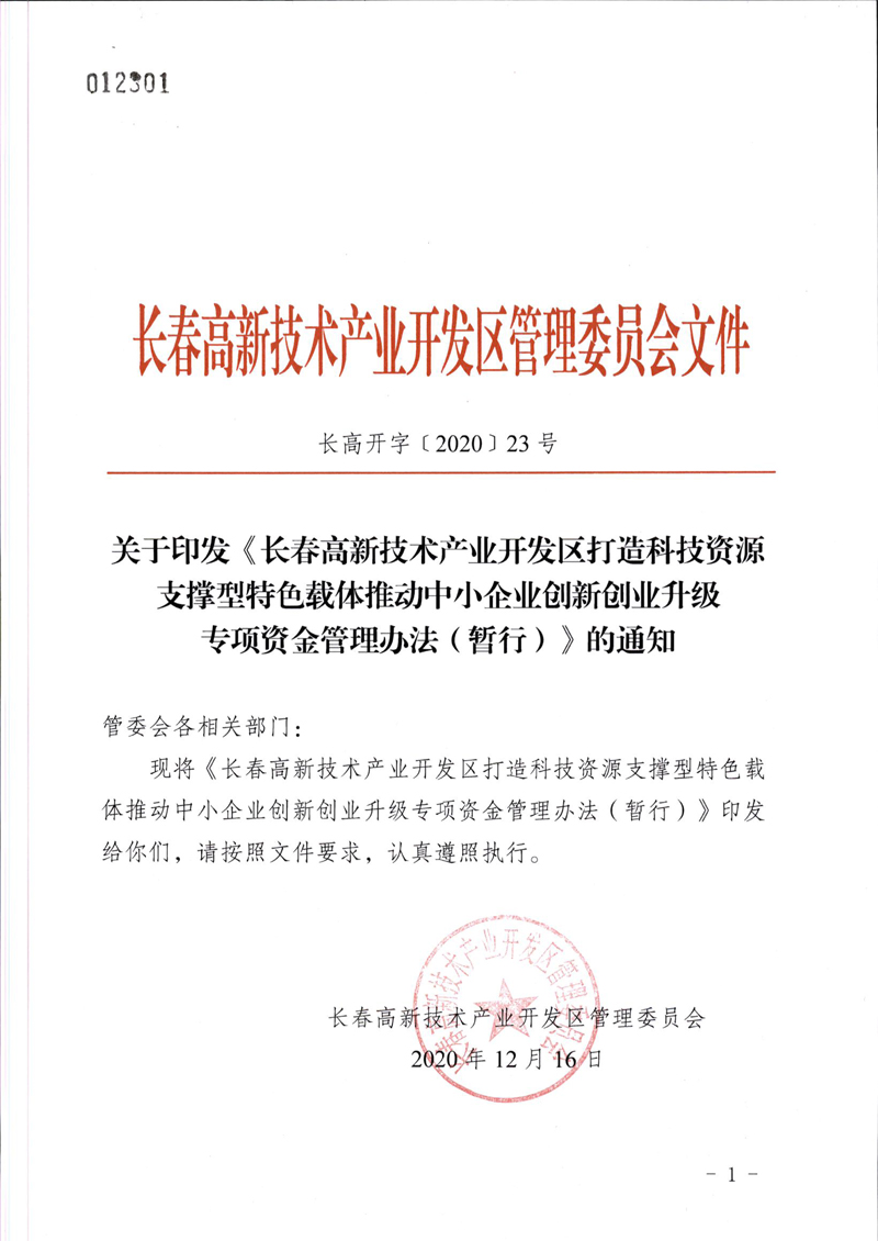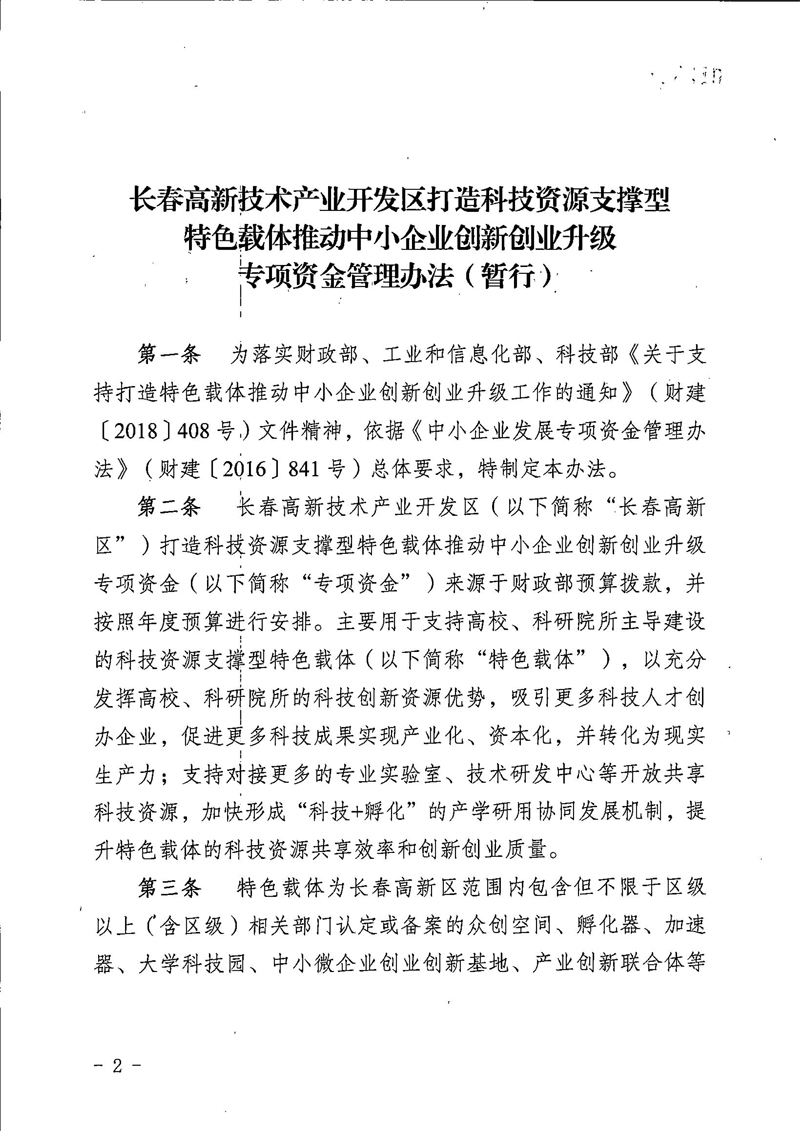 长高开-关于印发《365日博体育备用_365国际网站_365bet正网开户高新技术产业开发区打造科技资源支撑型特色载体推动中小企业创新创业升级专项资金管理办法(暂行)》的通知
