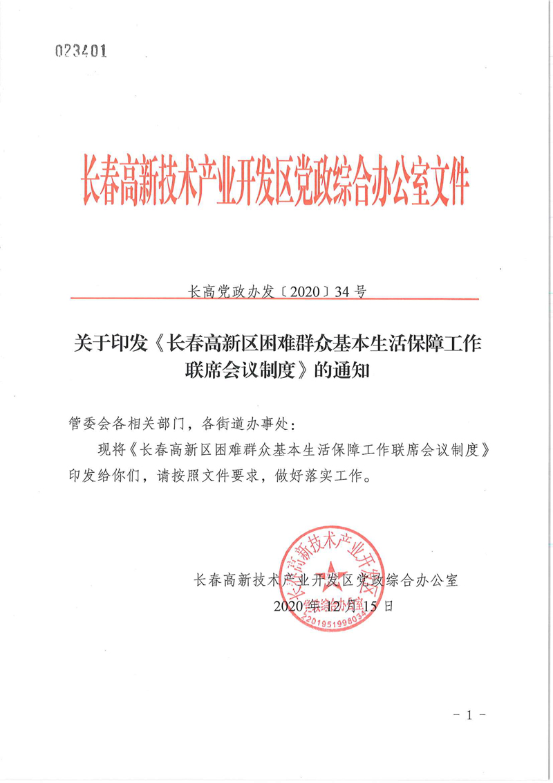 长高党政办发【2020】34号关于印发《365日博体育备用_365国际网站_365bet正网开户高新区困难群众基本生活保障工作联席会议制度》的通知