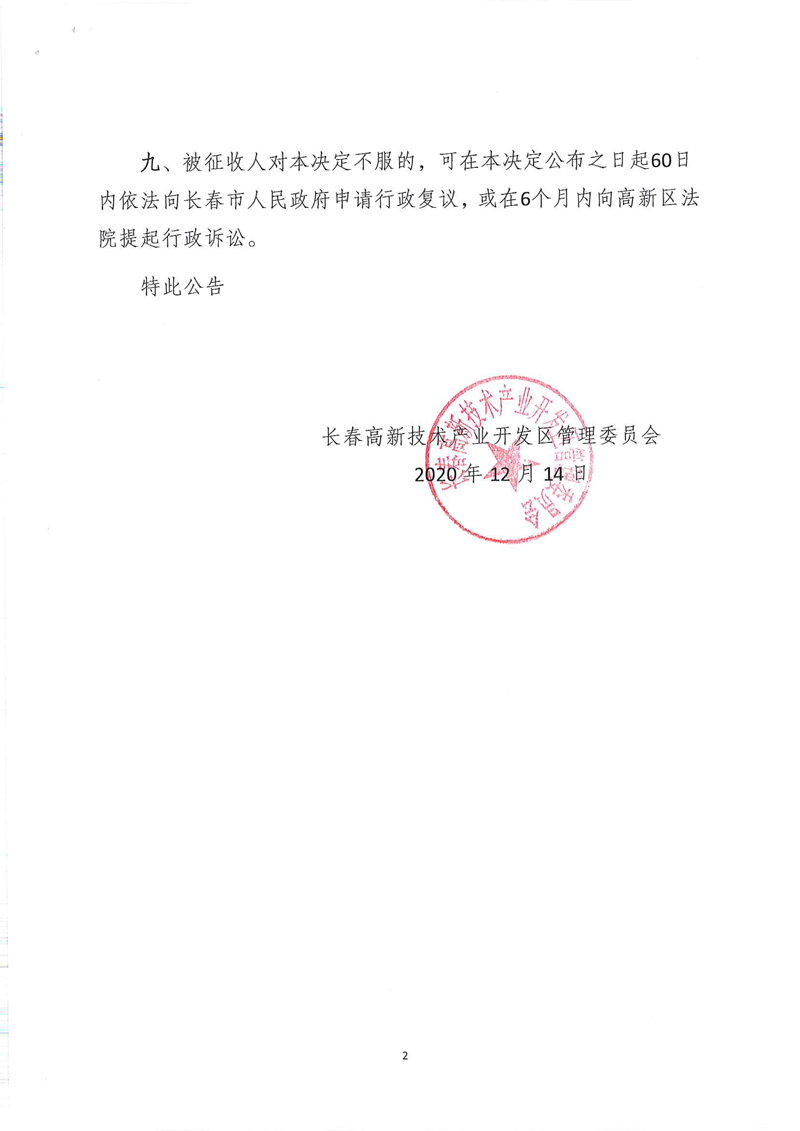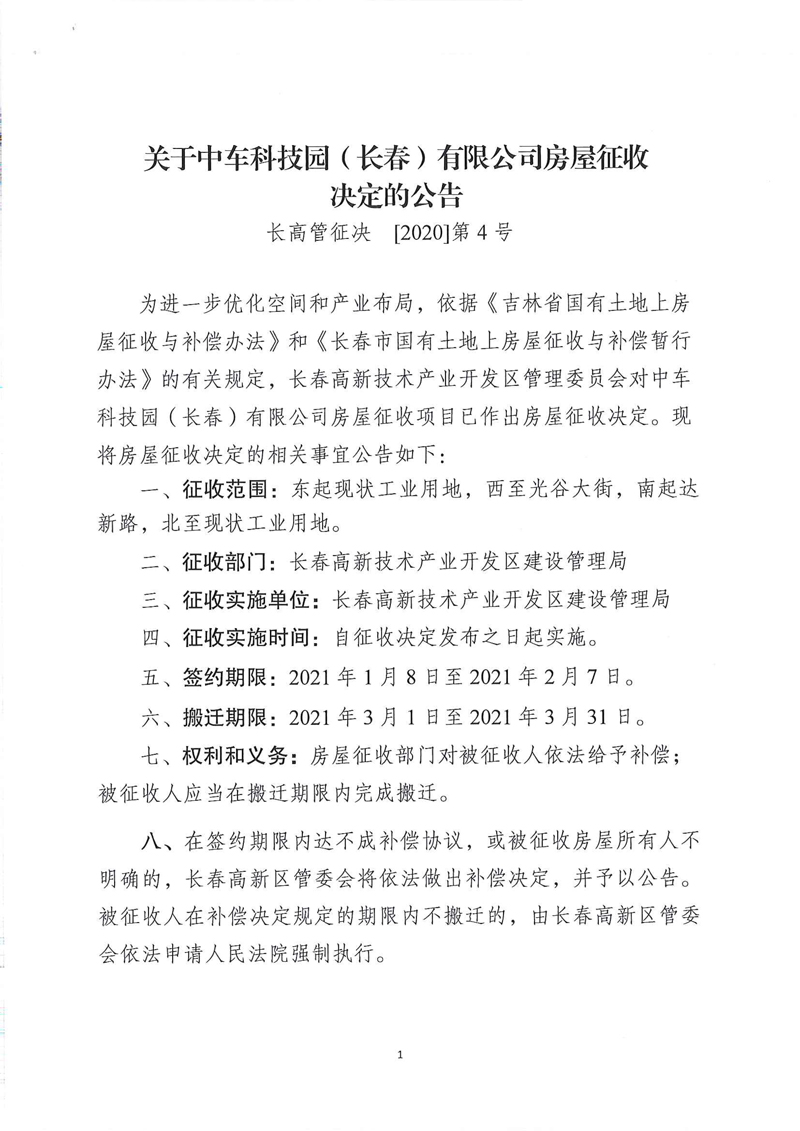 长高管征决【2020】第4号关于中车科技园(365日博体育备用_365国际网站_365bet正网开户)有限公司房屋征收决定的公告