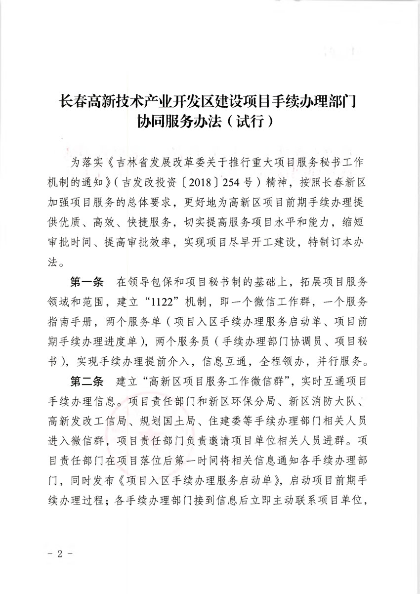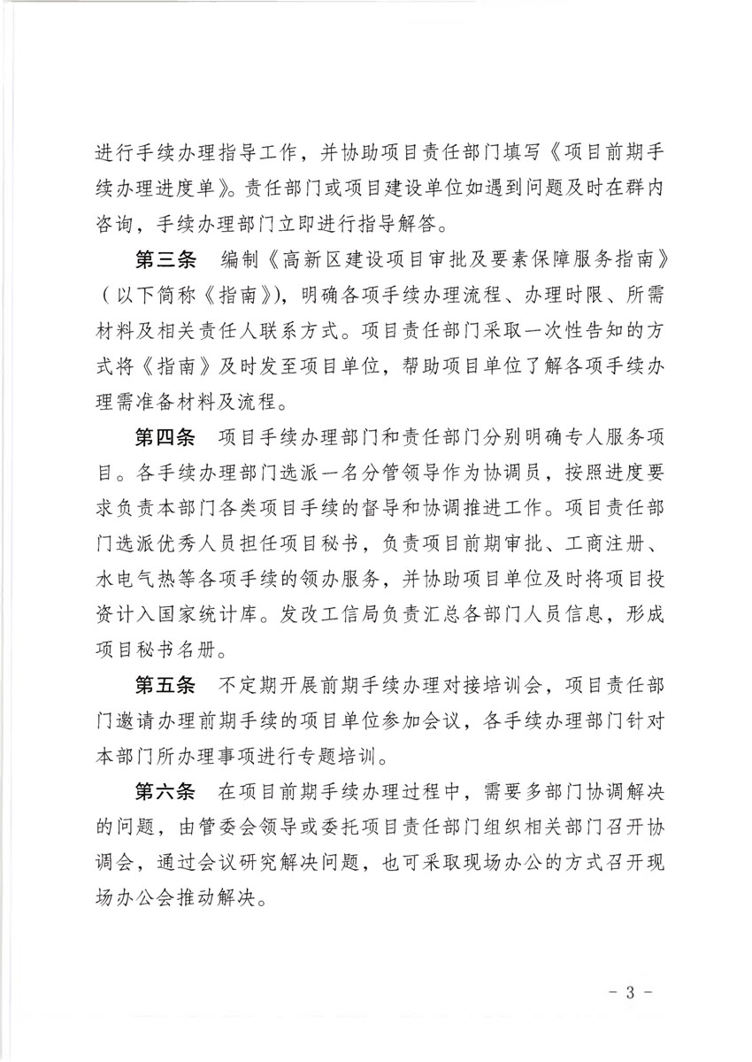 关于印发《365日博体育备用_365国际网站_365bet正网开户高新技术产业开发区建设项目手续办理部门协同服务办法(试行)》的通知