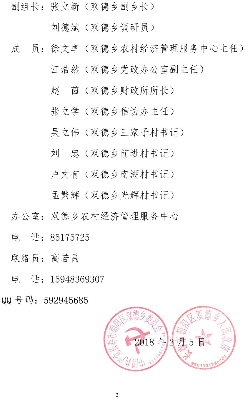 双德乡关于成立农村集体产权制度改革工作领导小组及设立联络员的通知