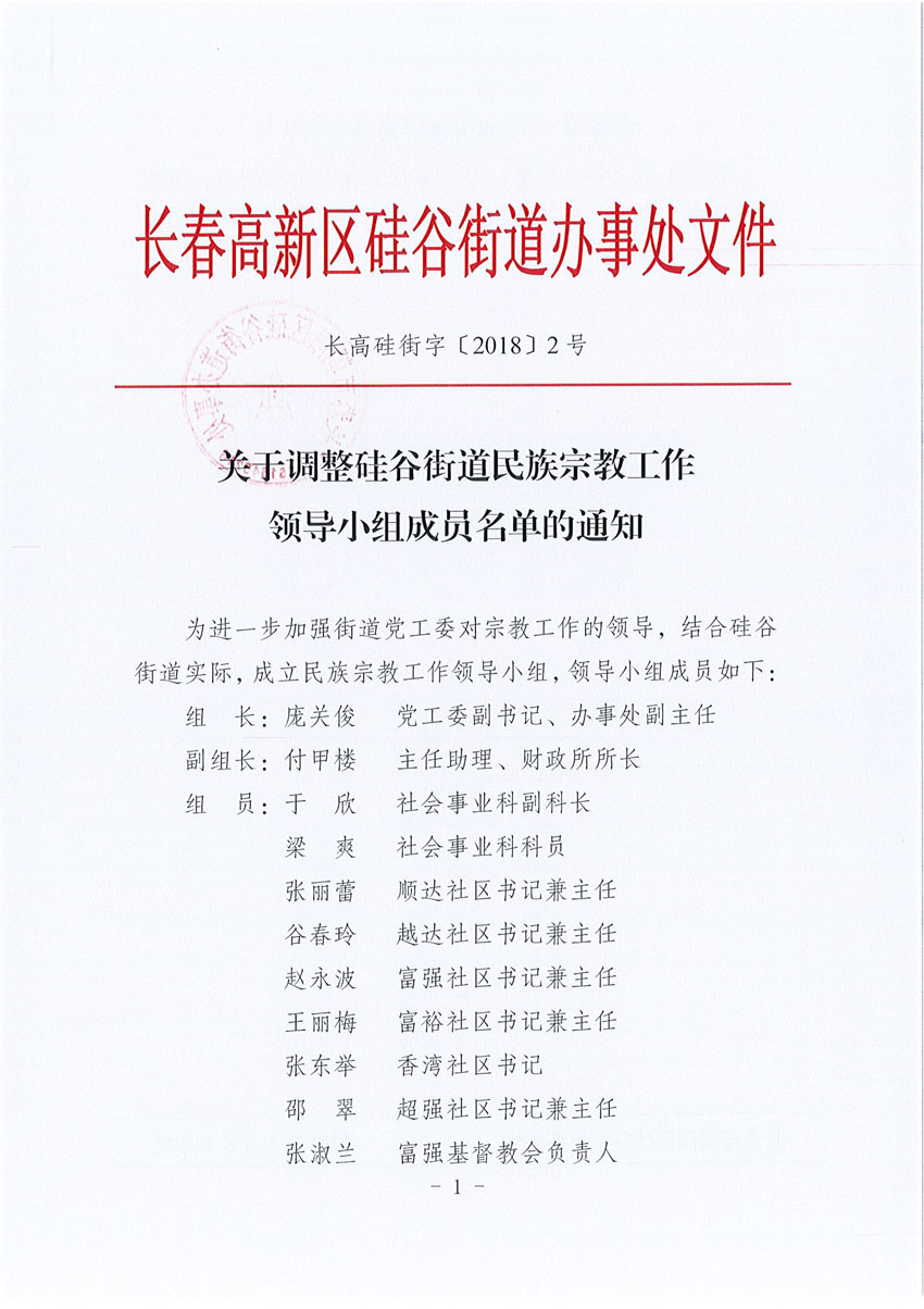 关于调整硅谷街道民族宗教工作领导小组成员名单的通知
