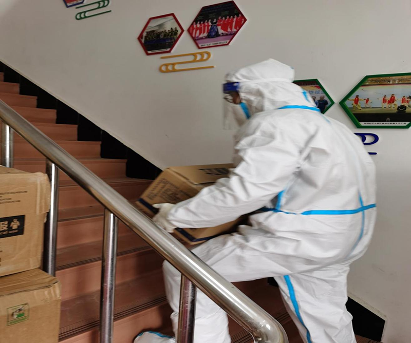 4月16日,他接到电话说两位阳转阴人员需返回昂展公园里,因社区工作人员和网格长都在隔离之中,需要临时支援,他没有任何犹豫,驾车从半路上赶回小区,将疾控中心送回的母女二人接收。由于事发突然,社区没有准备多余的居家隔离生活物资,他自掏腰包为二人购买了一箱方便面,还为她们准备了防护物资和抗原检测试剂盒,并耐心为她们讲述了居家隔离的相关防疫要求。母女二人对在特殊时期,防疫人员对她们细致、贴心的服务特别感激,让她们在阳转阴后倍感温暖。