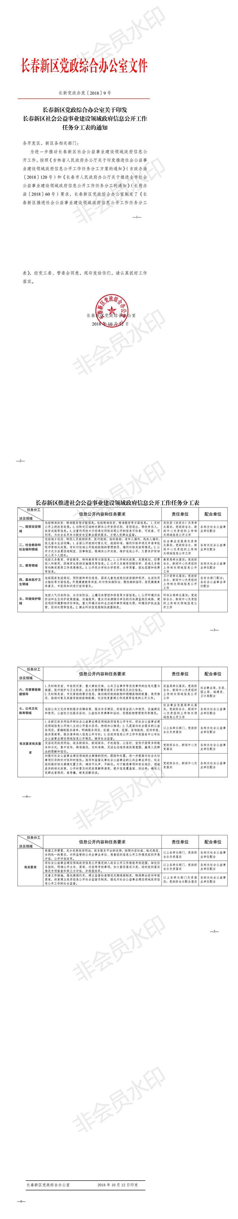 关于印发365日博体育备用_365国际网站_365bet正网开户新区社会公益事业建设领域政府信息公开工作任务分工表的通知